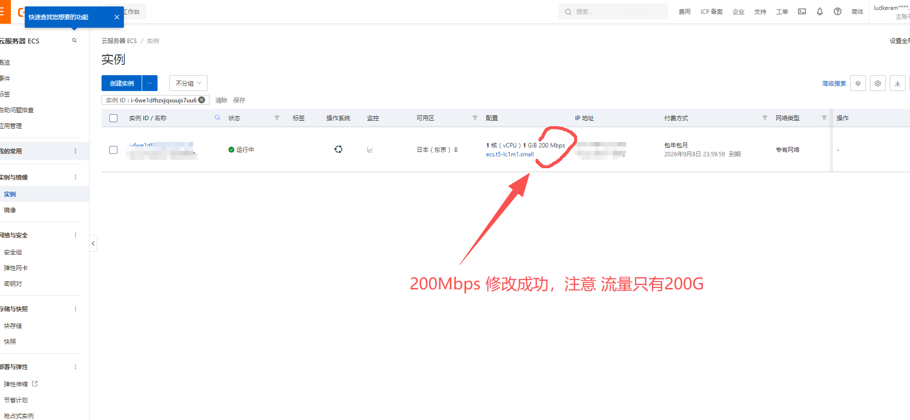 完成!!! 注意修改200Mbps,流量只有200G/月,一个月200G,使用1Mbps 无限流量